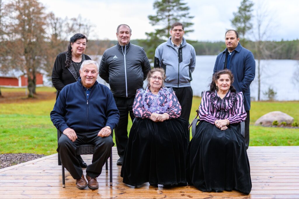 Kuvassa romanikäännöshankkeen palauteseminaarin osallistuneet, takarivi: Tuula Åkerlund, Armas Hagert, Taito Lindeman, Henry Lindgren, eturivi: Henry Hedman, Helena Hagert ja Miranda Vuolasranta.